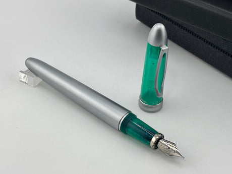 Itoya Galaxy Satin Chrome and Green Cap - Fountain Pen