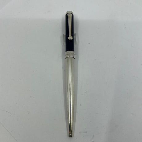 Montegrappa Ballpoint Pen with Dark Blue Cap & Sterling Silver Barrel and Trim