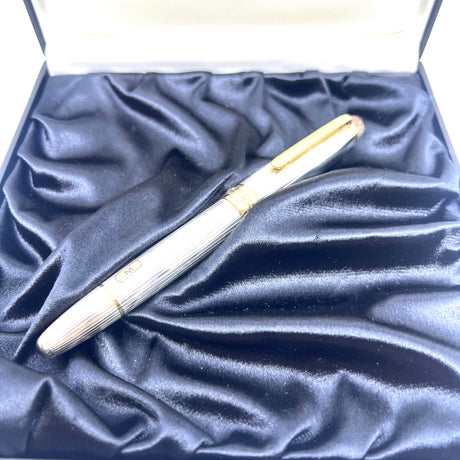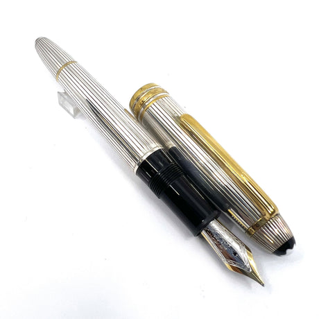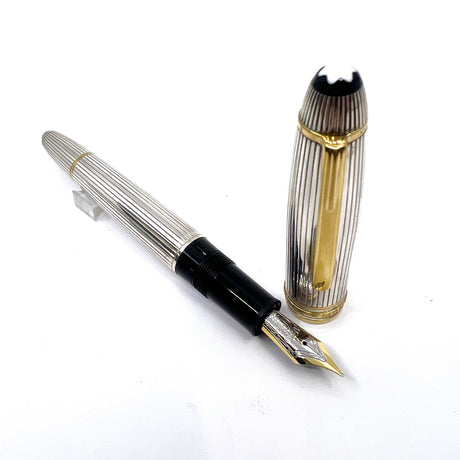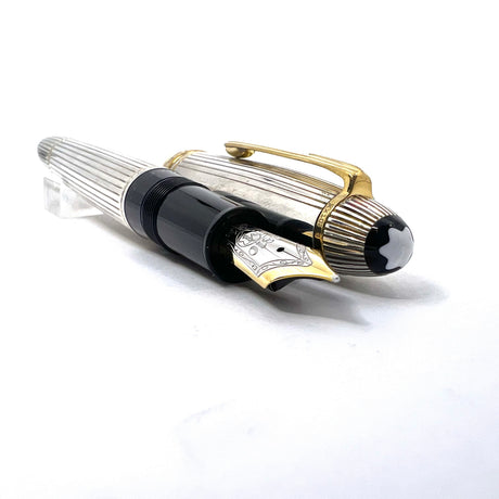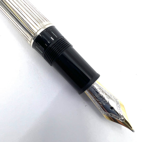 Montblanc LeGrand Solitaire #146 Sterling Silver Pinstriped Fountain Pen - Medium 18kt Gold Nib
