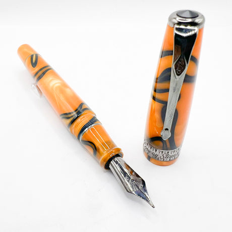 Conway Stewart Model #100 Orange Swirl Fountain Pen - Medium Stainless Steel Nib