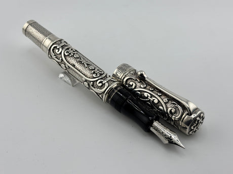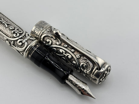 Aurora Benvenuto Cellini Sterling Silver Limited Edition Fountain Pen - Medium 18kt Gold Nib