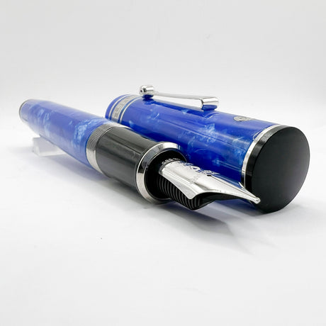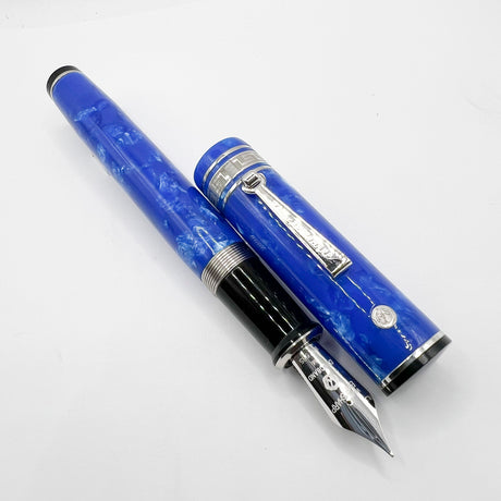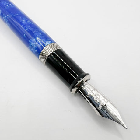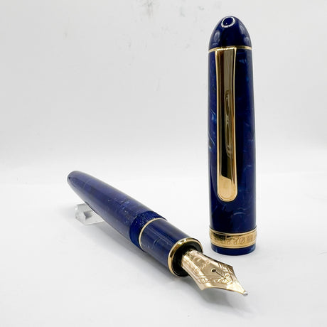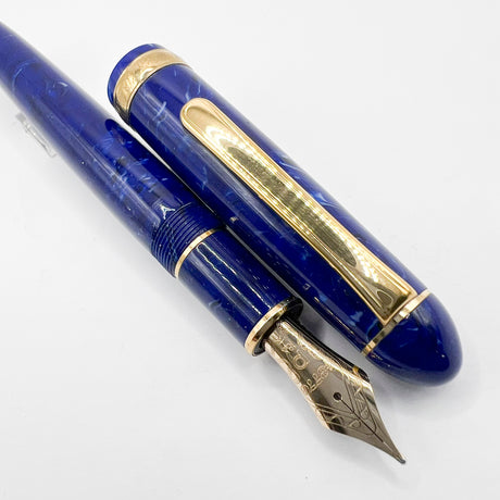 Platinum #3776 Celluloid Marbled Midnight Blue Ocean Fountain Pen - Broad 18kt Gold Nib
