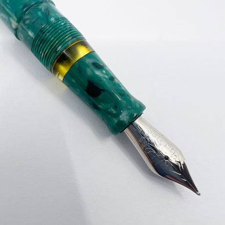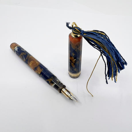 OMAS Princess Paragon Extra Blue Saffron Celluloid Fountain Pen - Semi-Flexible Medium 18kt Gold Nib