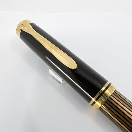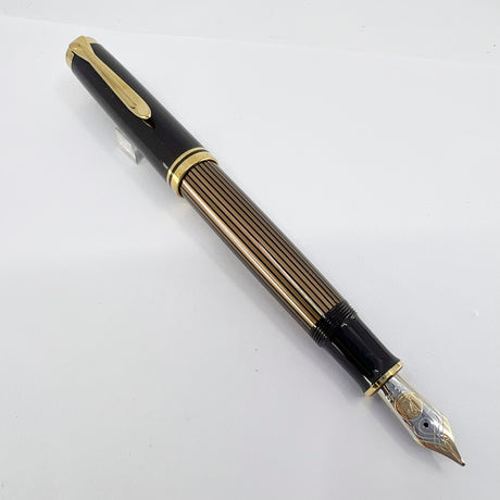 Pelikan M800 Brown Striped Barrel/Solid Brown Cap Fountain Pen - Medium 18kt Gold Nib