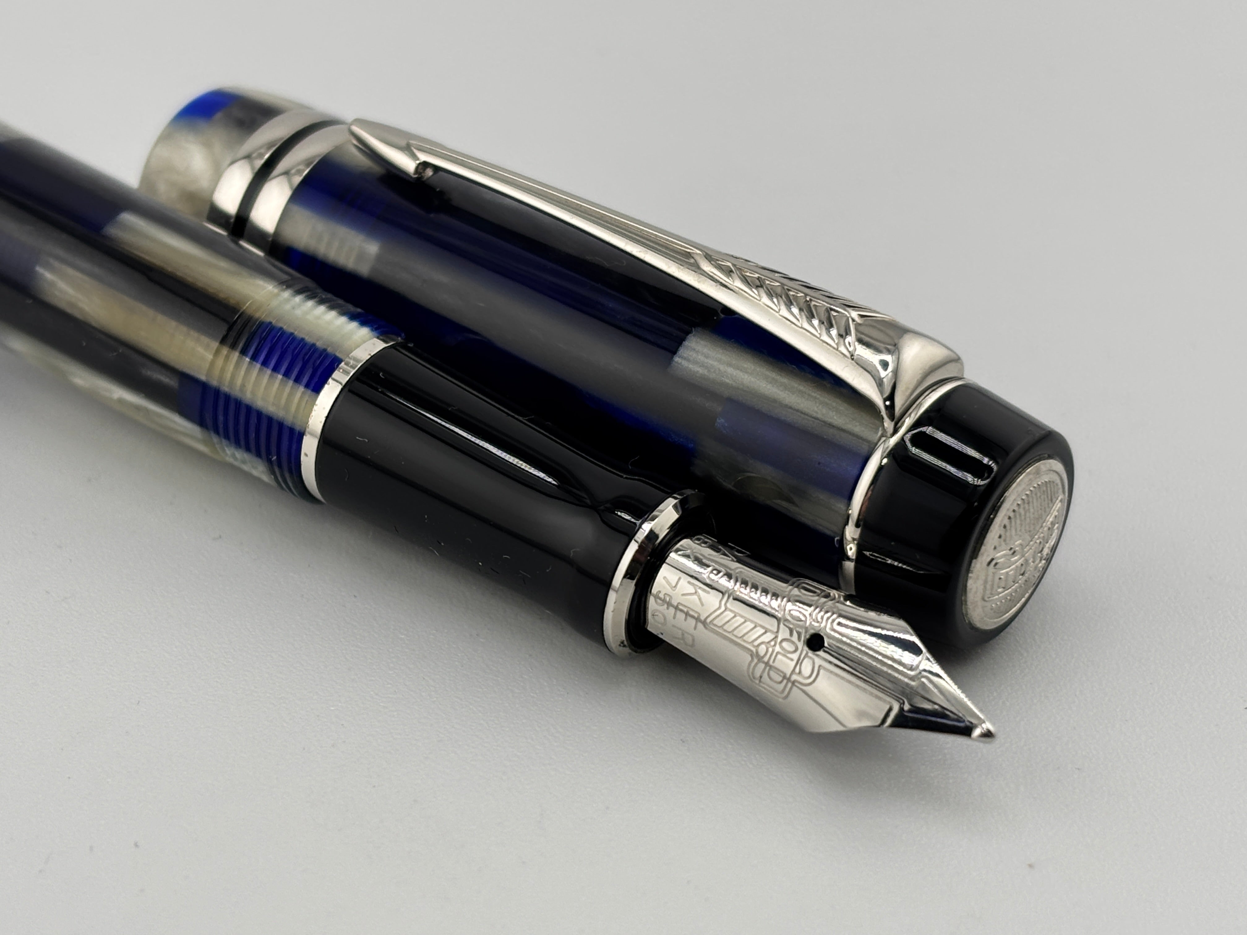 Parker Duofold Special Edition International Mosaic Blue Fountain Pen - Medium 18kt Gold Nib