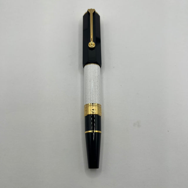 - #6947/8700 - Facetted Black Cap - Guilloched Ivory Resin Mid-Section -