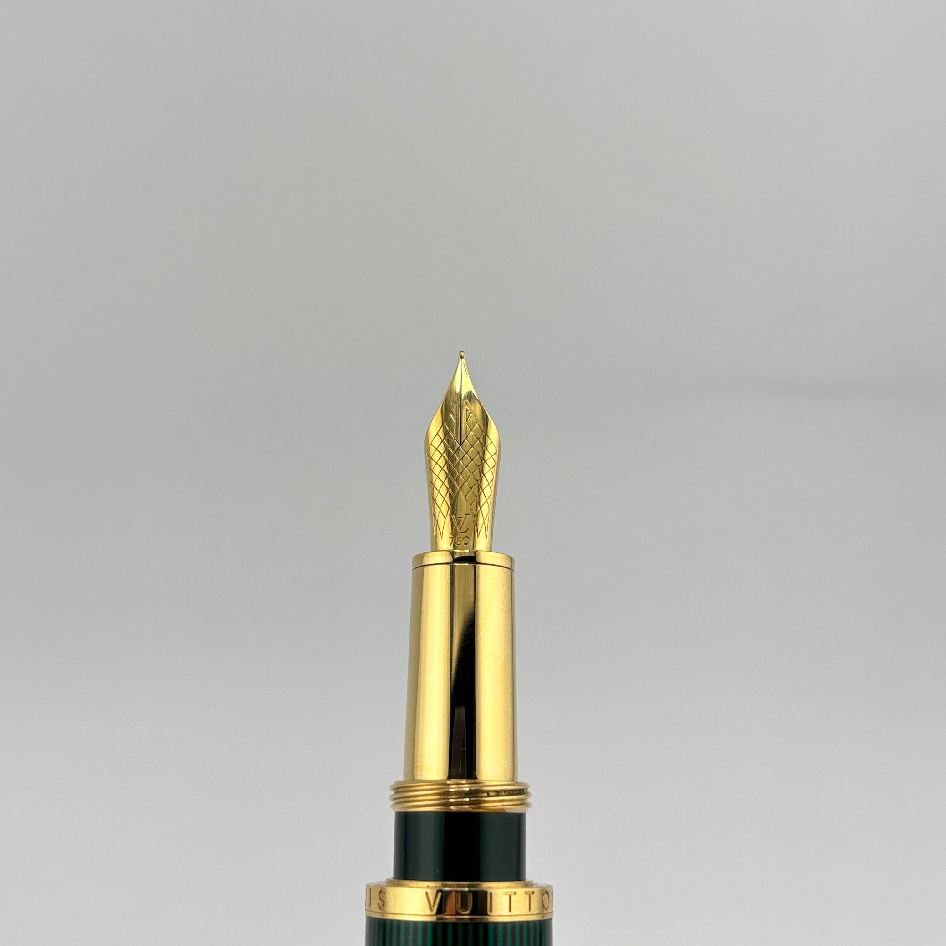 Louis Vuitton Green Striped Lacquered Cargo Fountain Pen - Medium 18kt Gold Nib - RARE!