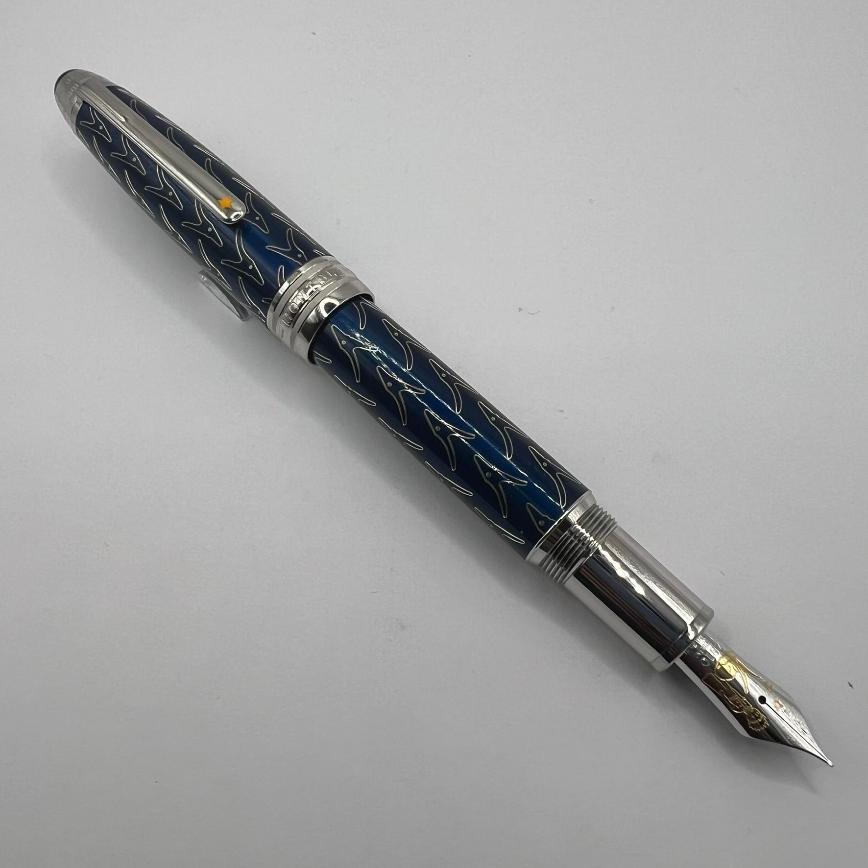 Fountain Pen - Deep Blue Lacquer with an Engraved Fox Face Pattern - Clip is