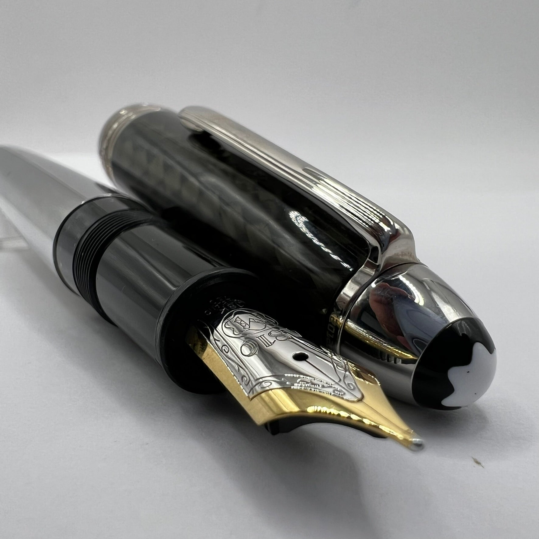 Montblanc Meisterstuck LeGrand Solitaire Carbon Steel #146 Fountain Pen - Medium 18kt Gold Nib