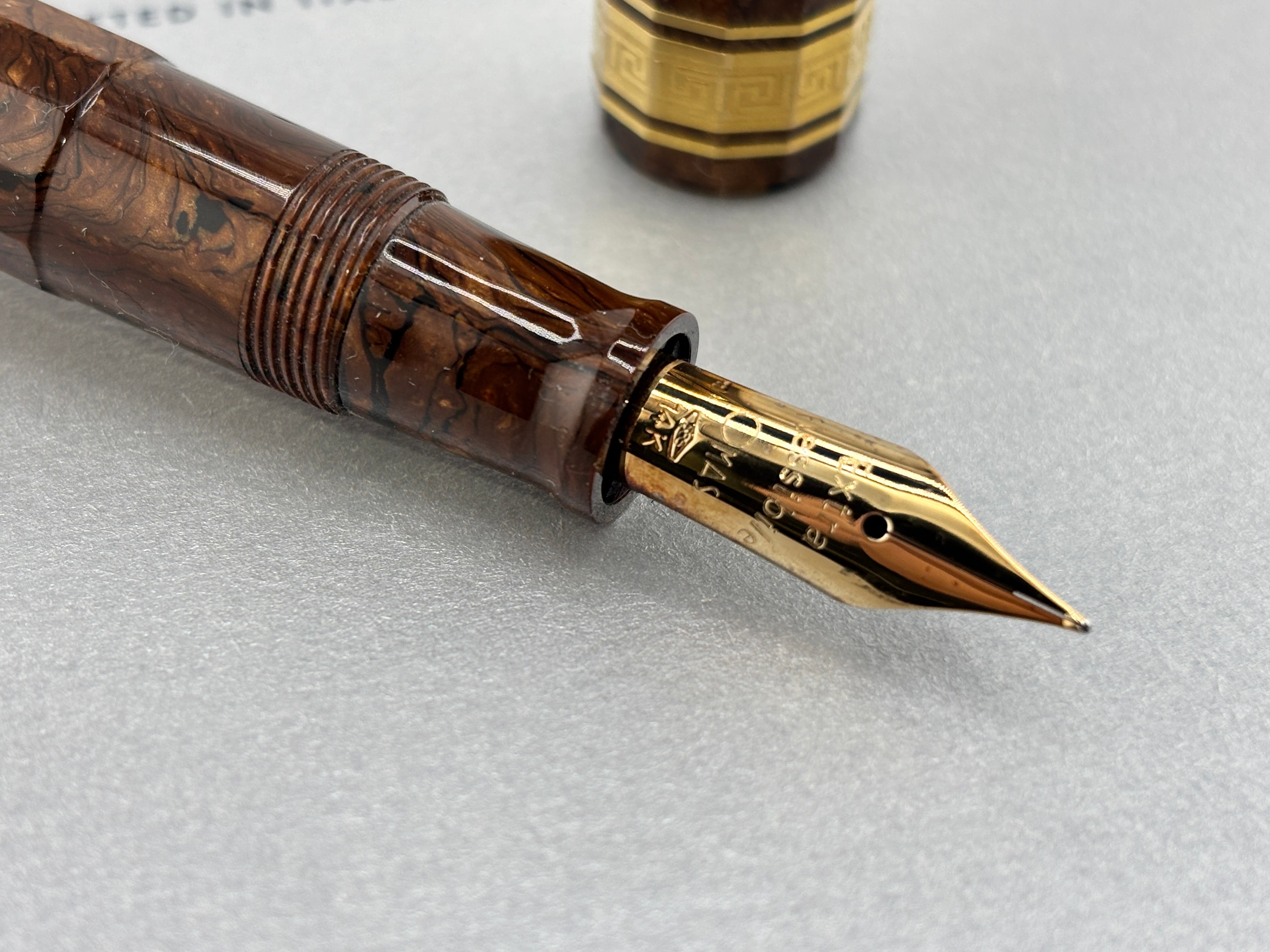 OMAS Original Paragon "Vintage" Burlwood Celluloid Limited Edition Fountain Pen - Fine "EXTRA FLESSIBLE" 14Kt Gold Nib - One of the Most Desirable OMAS Celluloids and Nibs!