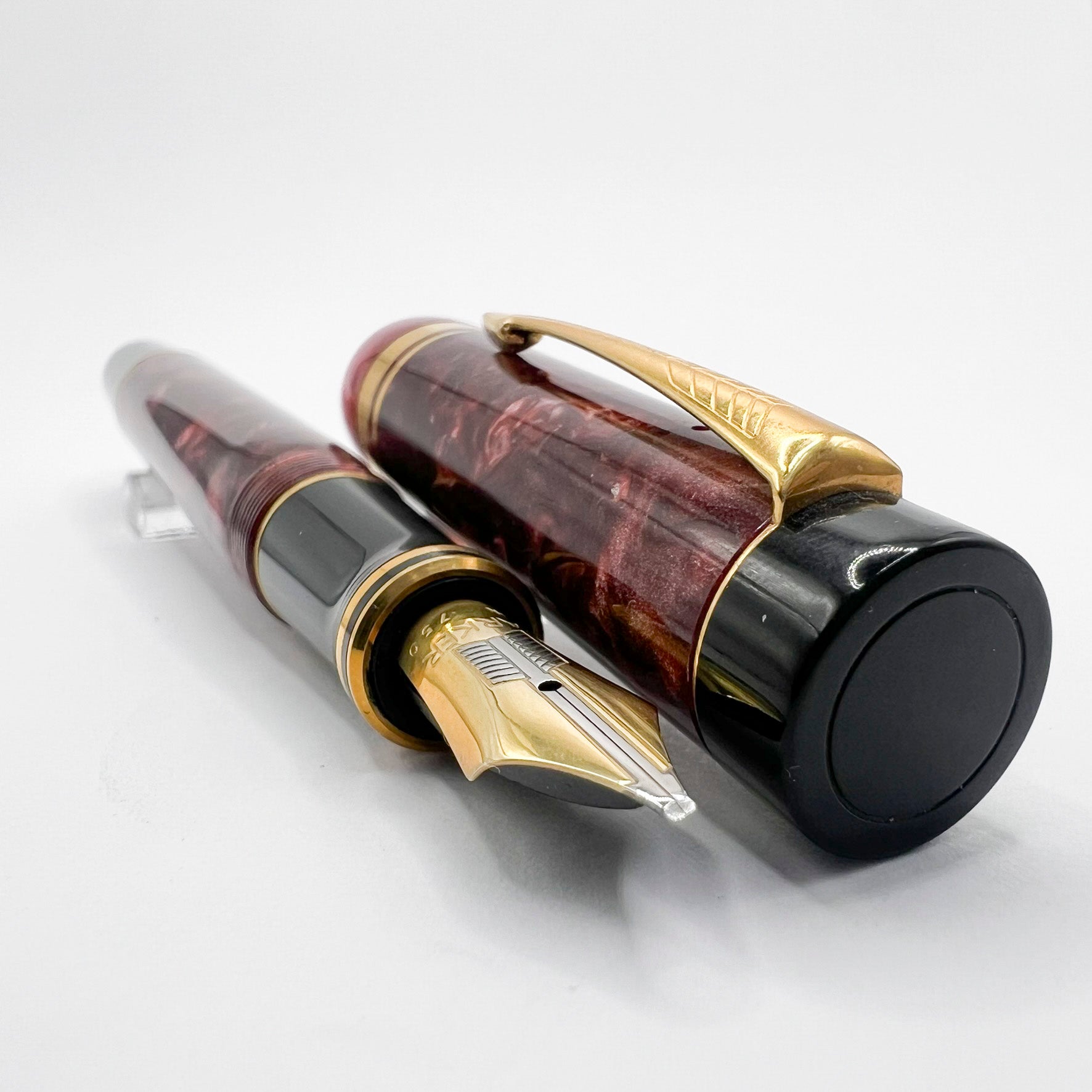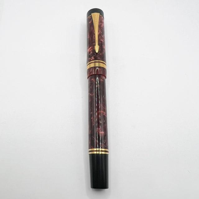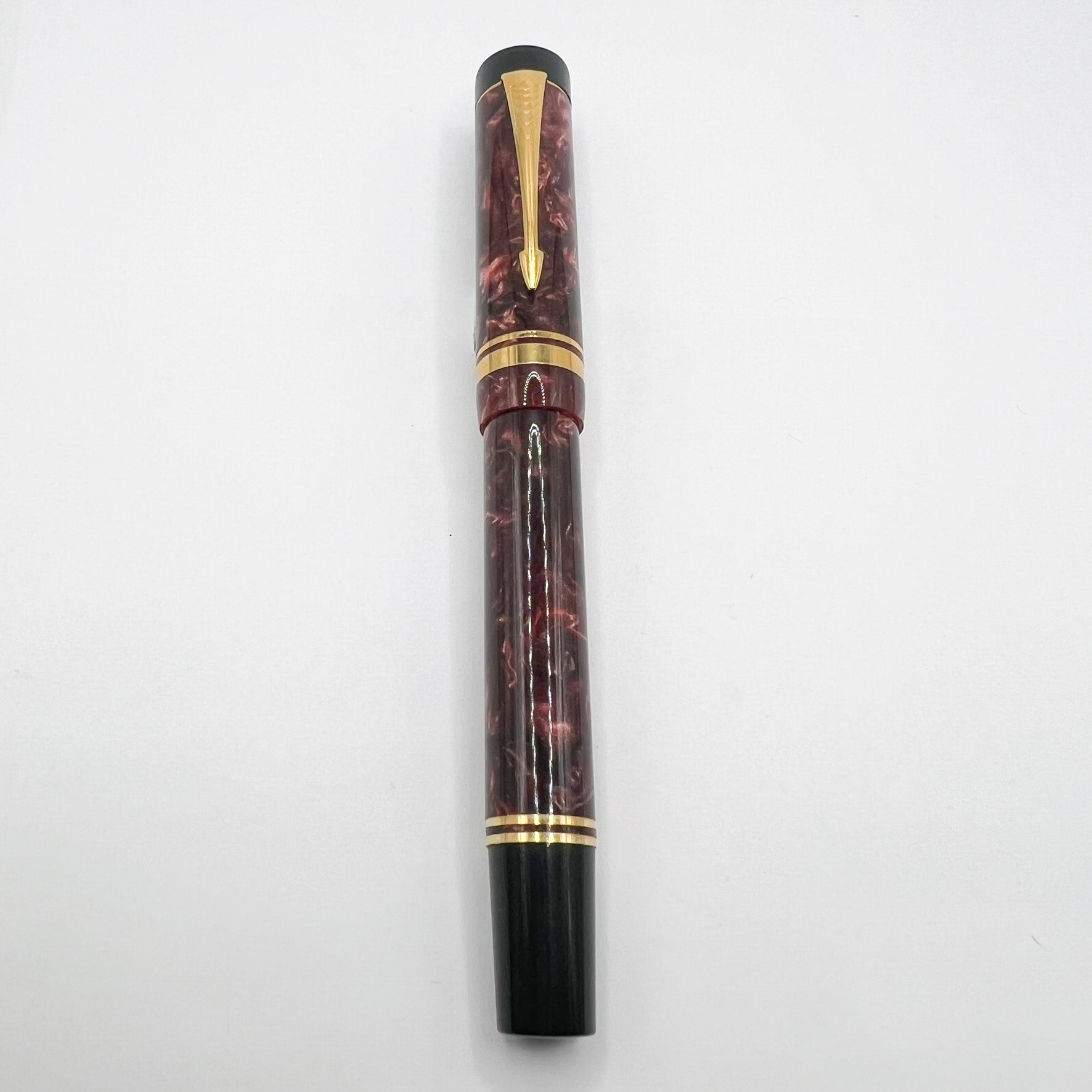 Parker Centennial (Largest Size) Marbled Maroon Duofold Fountain Pen (1989) - Broad Oblique (#89) 18kt Gold Nib