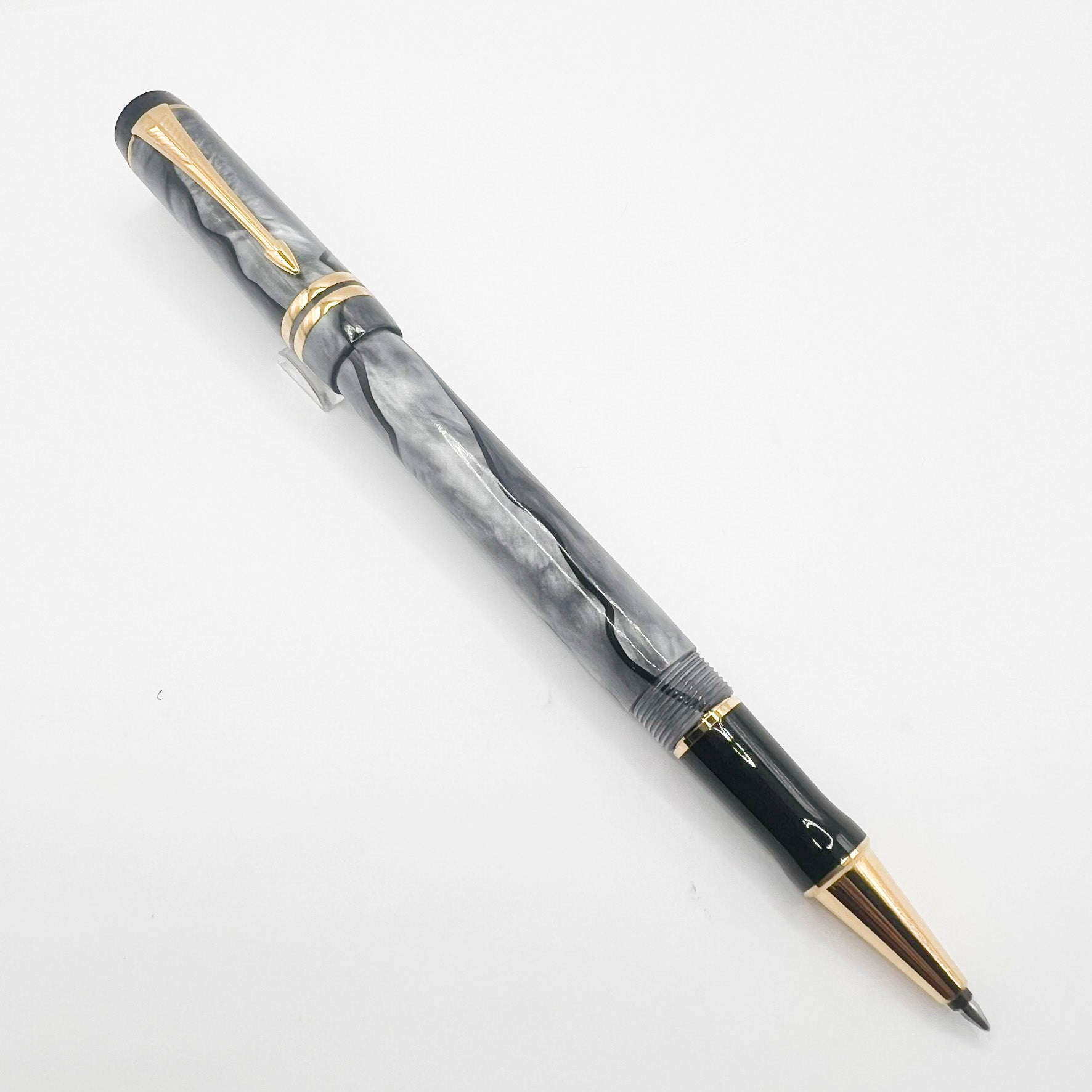 Parker Duofold Marbled Gray, Pearl & Black Rollerball - Gold Plated