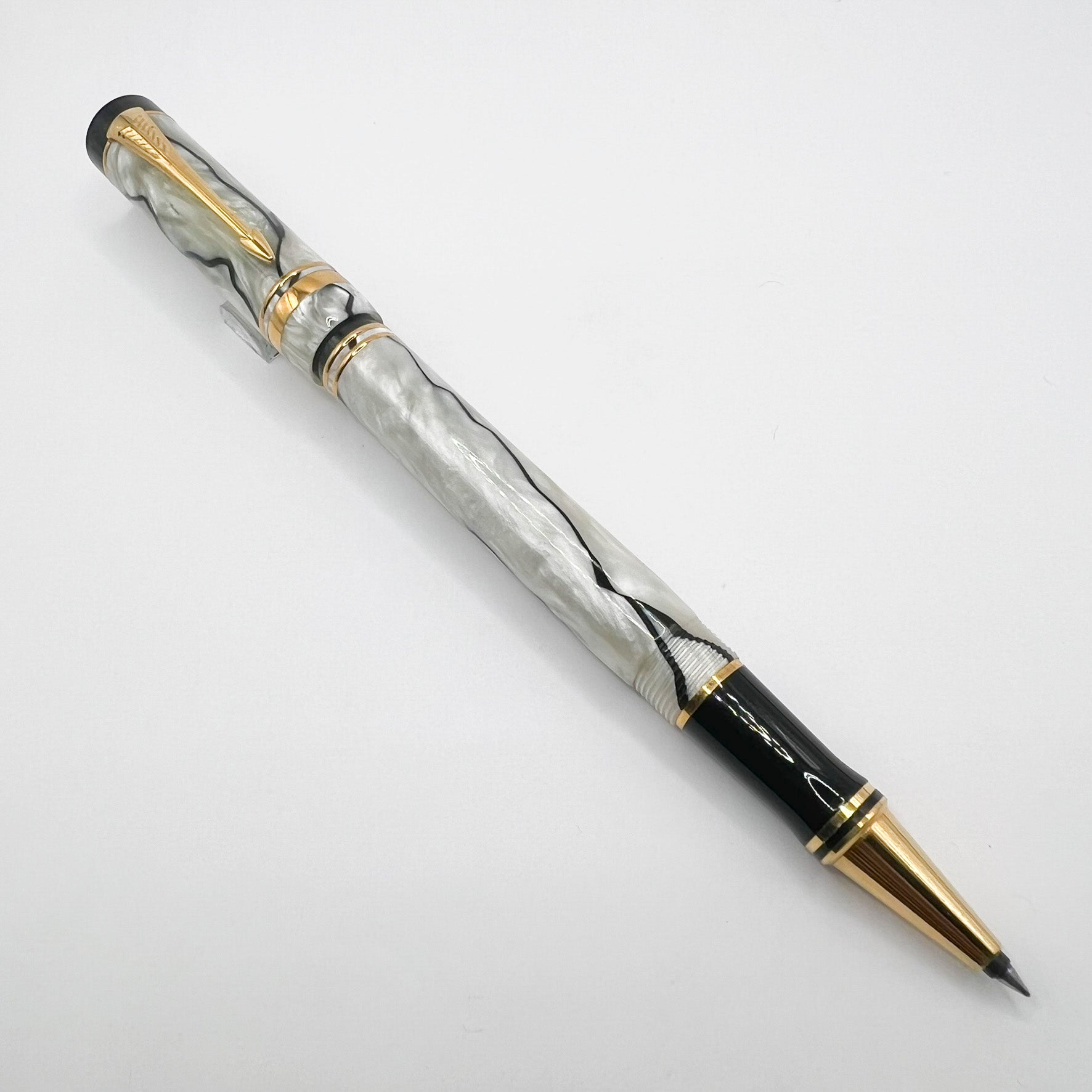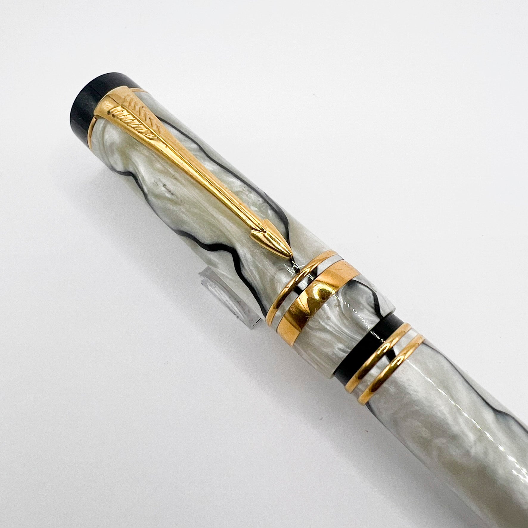 Parker Duofold Lustrous Pearl & Black Rollerball - Gold Plated Trim
