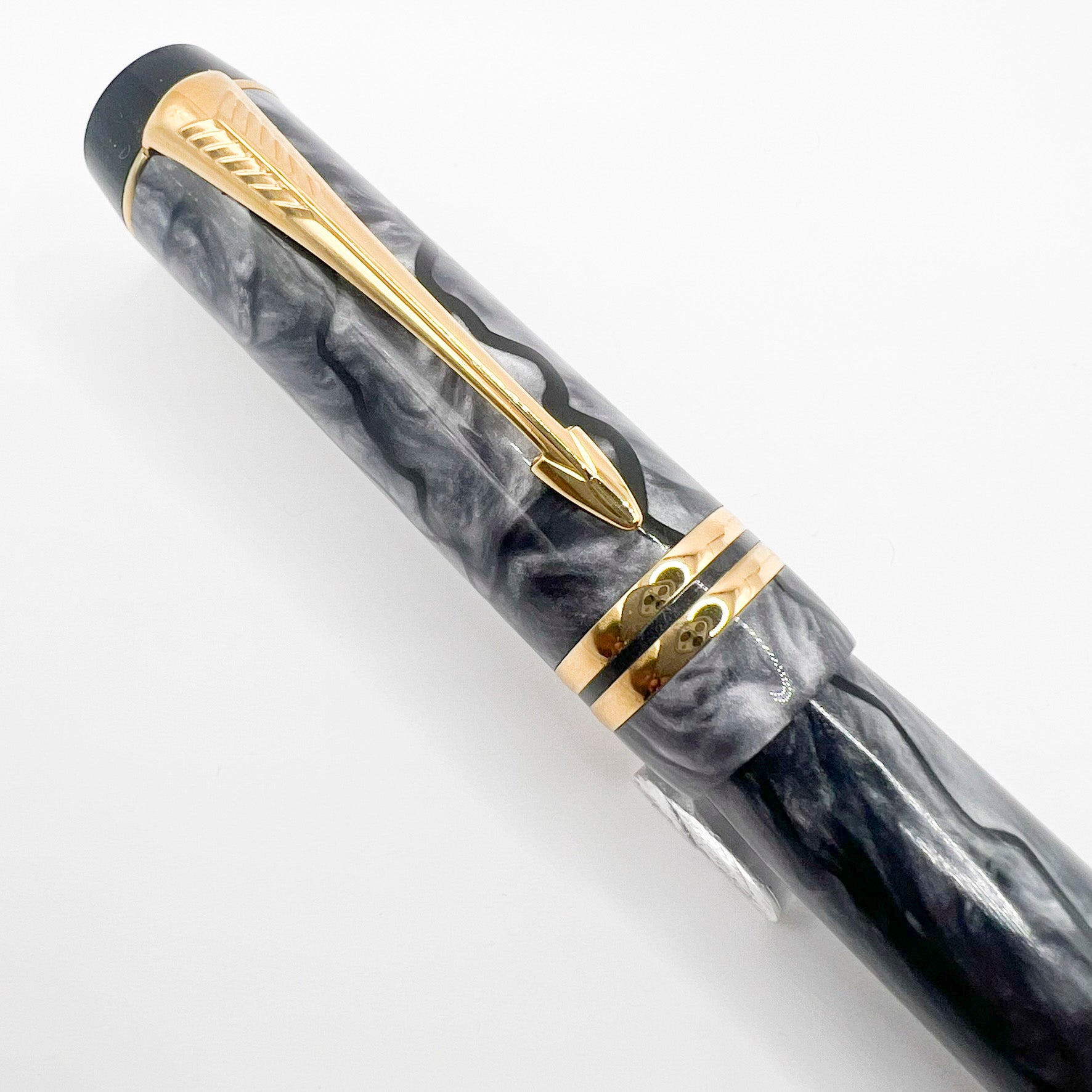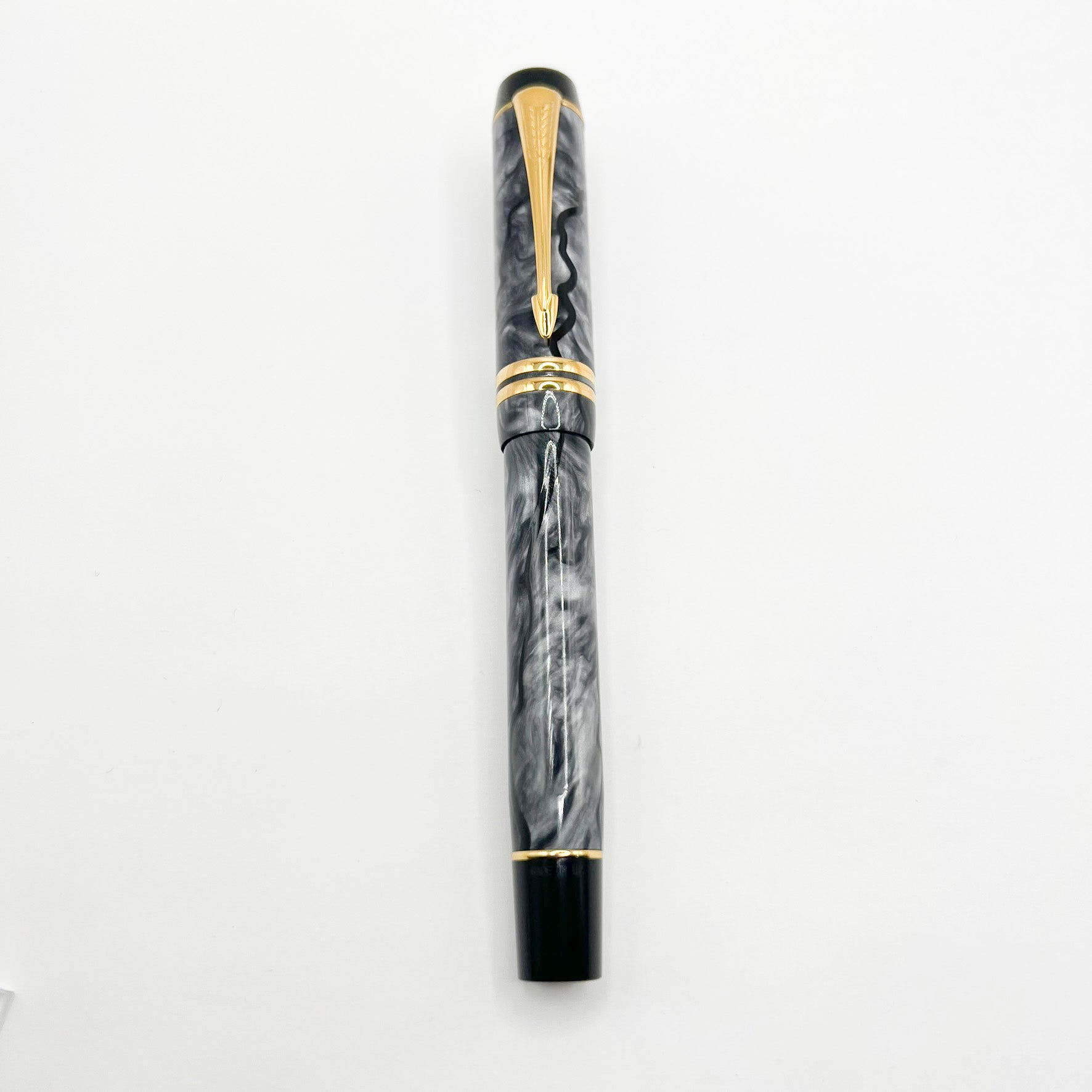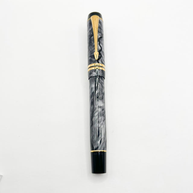 Parker Duofold Centennial (Largest) Marbled Gray, Pearl & Black Fountain Pen - Extra Fine 18kt Gold Nib
