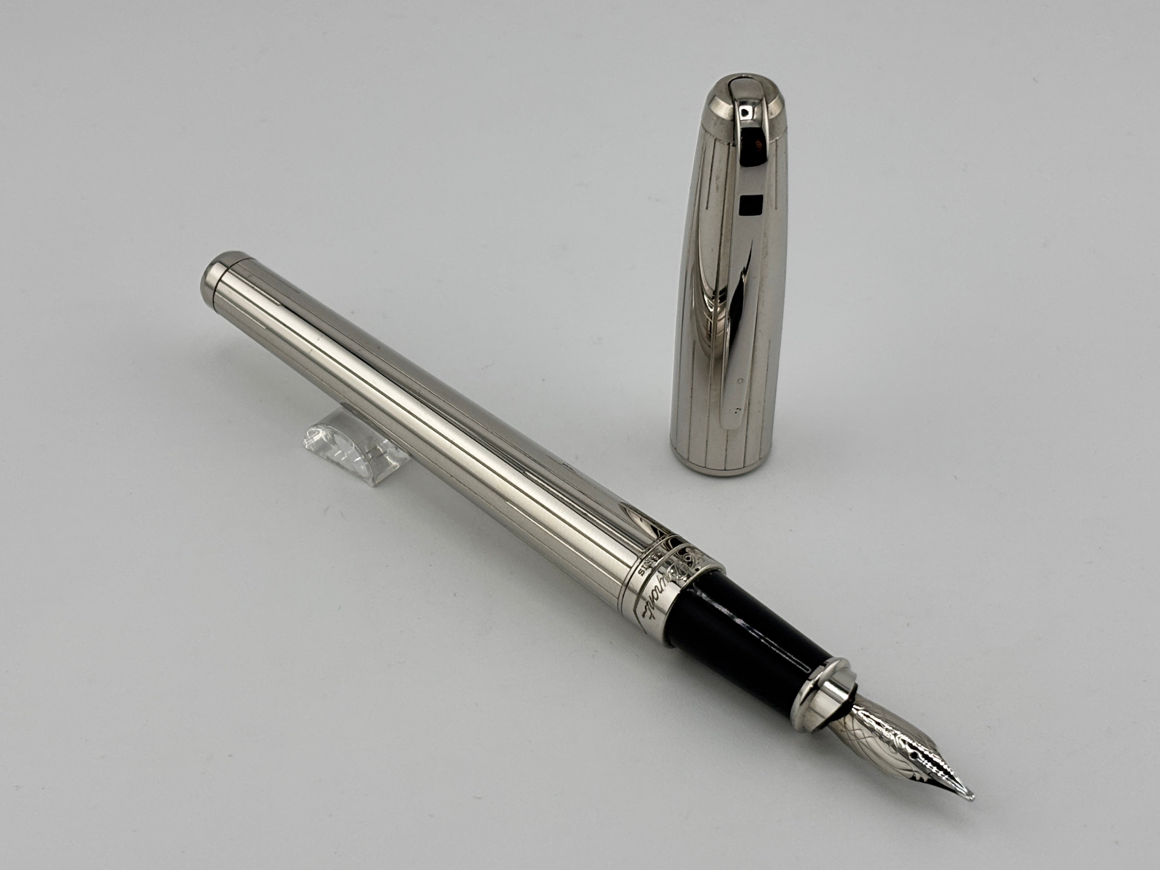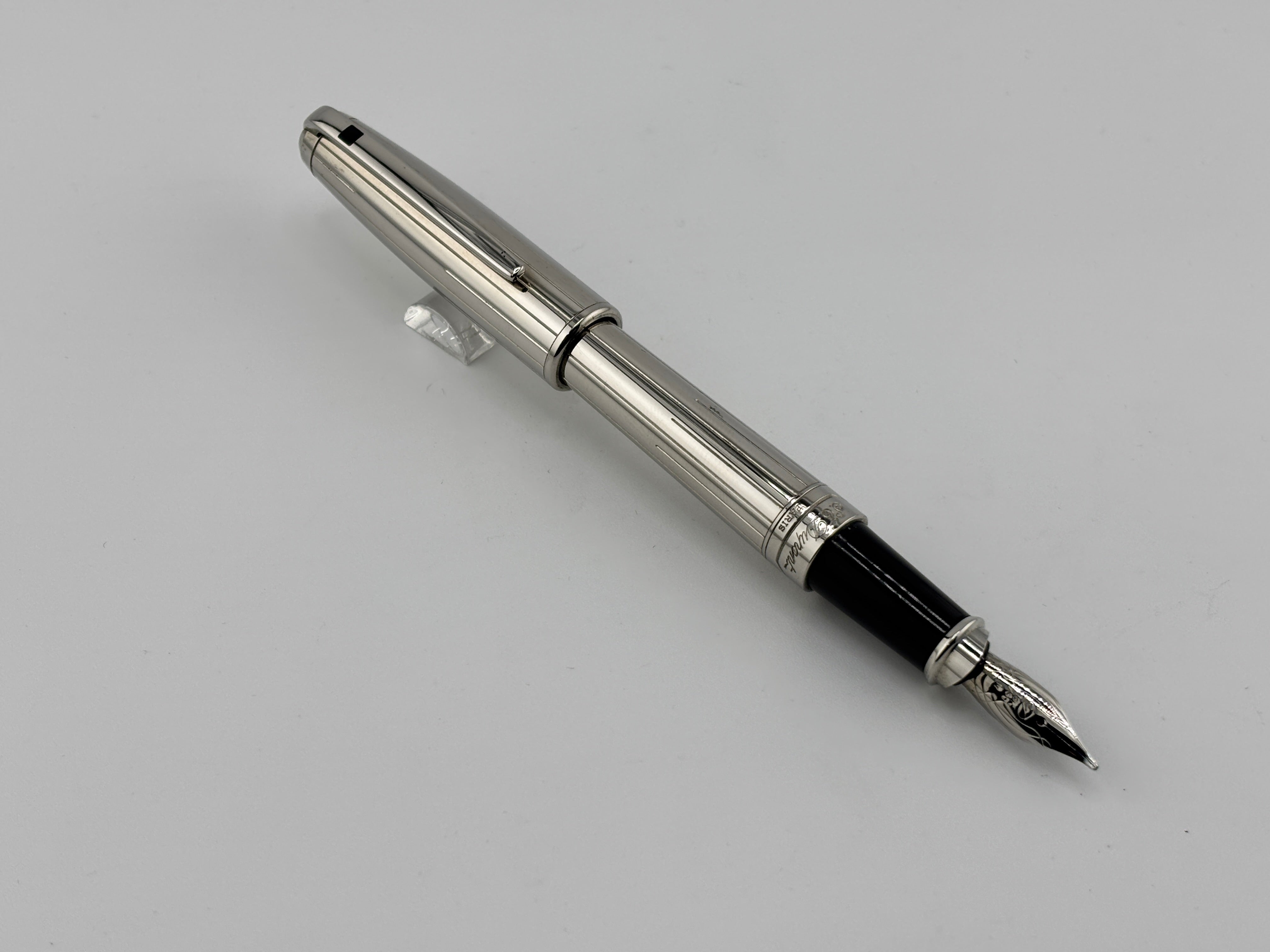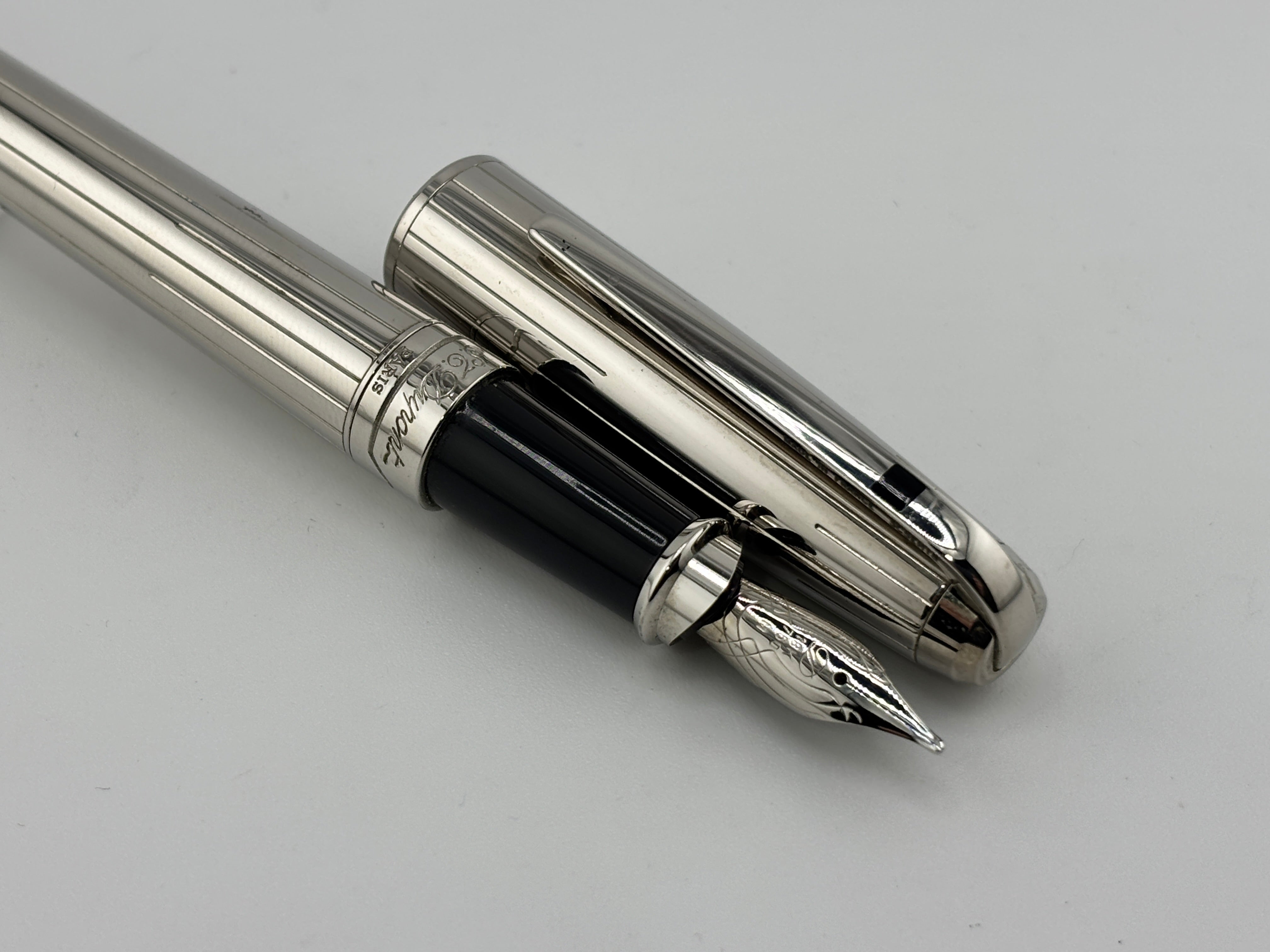 ST Dupont Orpheo Full Size Palladium Plated Fountain Pen - Medium 18kt Gold Nib