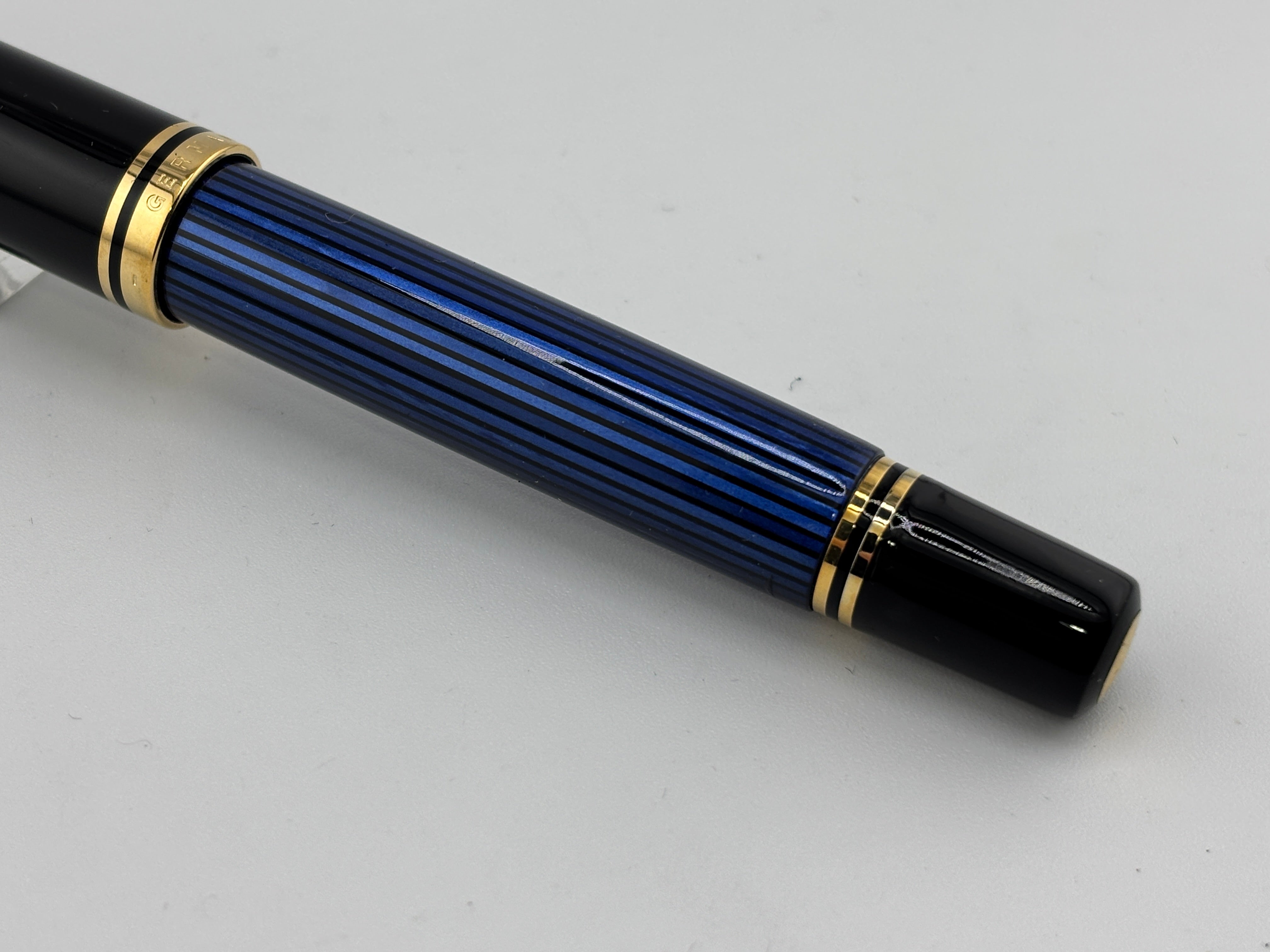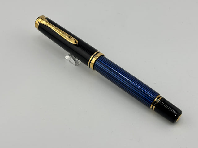Pelikan M800 Black Cap/Blue Striped Barrel Fountain Pen - Medium 18kt Gold Nib