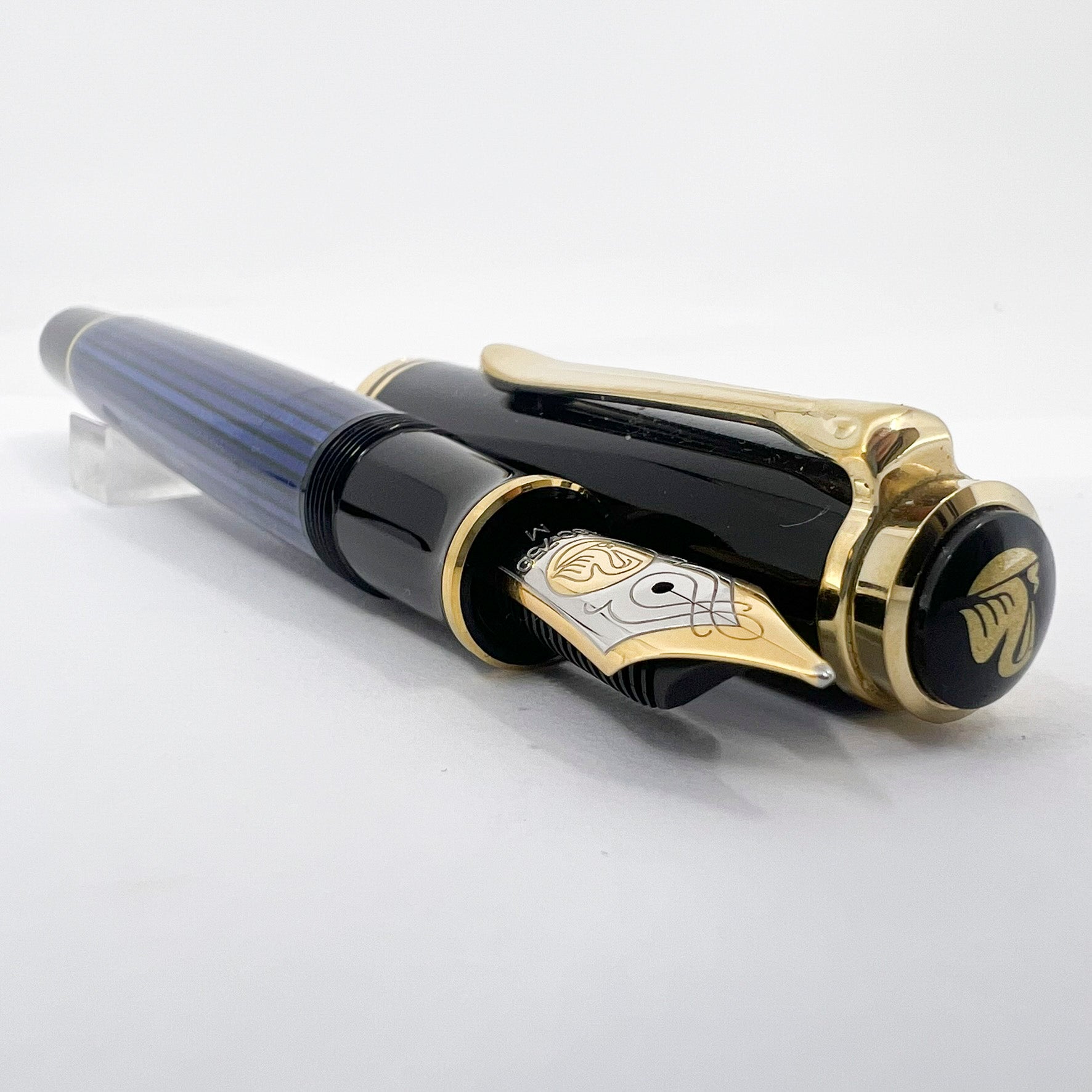 Pelikan M800 Black Cap/Blue Striped Barrel Fountain Pen - Medium 18kt Gold Nib