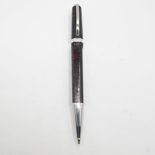 Visconti Wall Street Burgundy Red Striped Celluloid Ballpoint Pen - "Squaring the Circle" Shaped - Platinum - Plated Trim - Twist Action - Circa 2004 - Original Box (Light