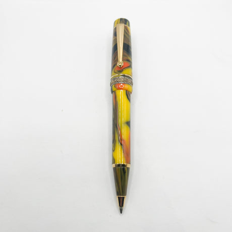 Delta Gallery Ballpoint Pen - Bright Yellow Background with Orange, Brown and Black Brushstrokes