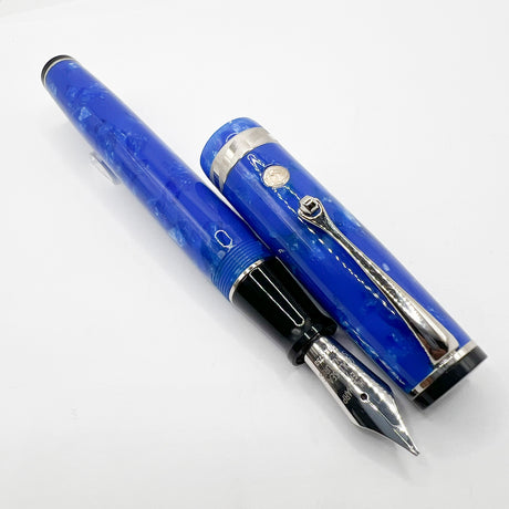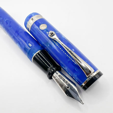 Marlen Chagall Marbled Blue Fountain Pen - Broad 18kt Gold Nib
