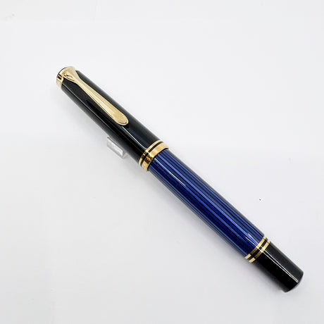 Pelikan Souveran M800 Black Cap/Blue Striped Barrel Fountain Pen - Broad 18kt Gold Nib