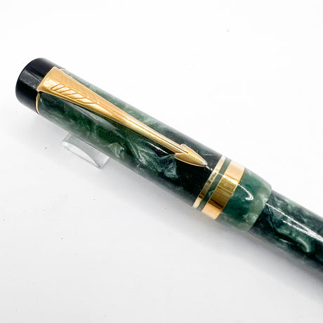 Parker Duofold Marbled Green Cap Actuated Ballpoint Pen - Circa 1990 - Scarce!