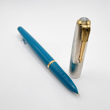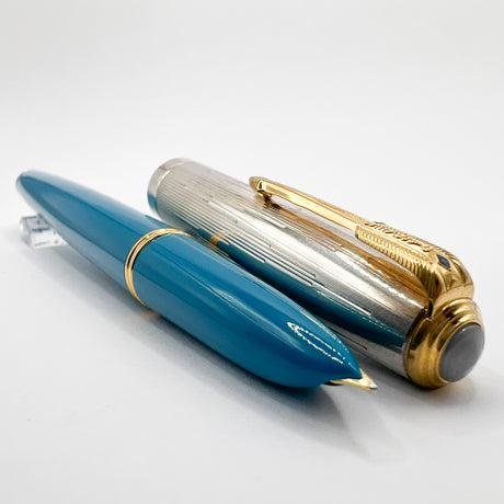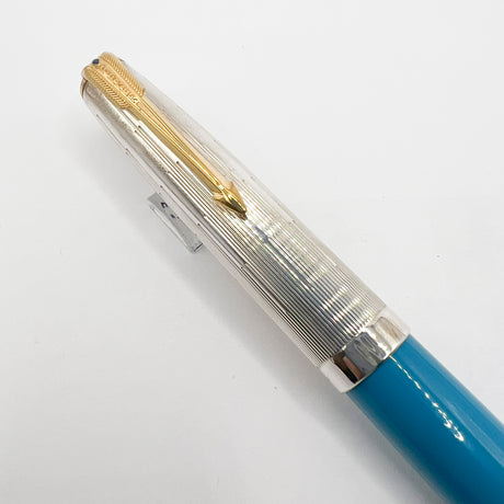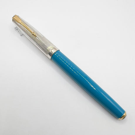 Parker 51 Special Edition Sterling Silver & Vista Blue Fountain Pen - Fine 18kt Gold Nib