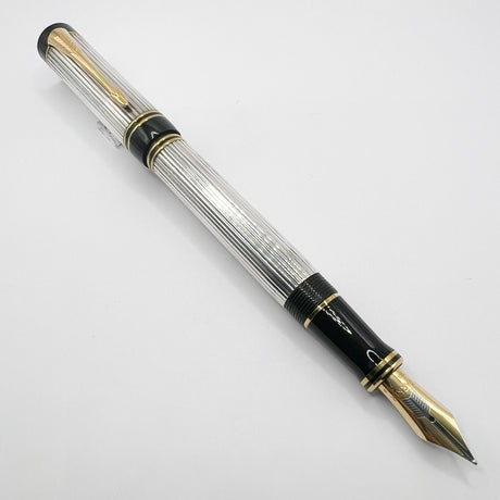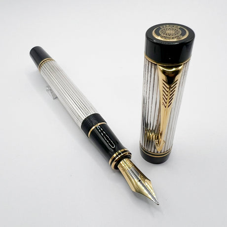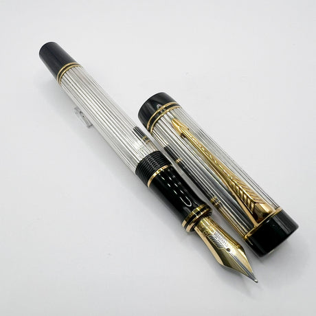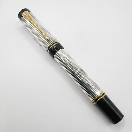 Parker Duofold Centennial (Largest Size) Sterling Silver Fountain Pen - Medium 18kt Gold Nib