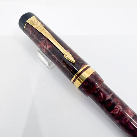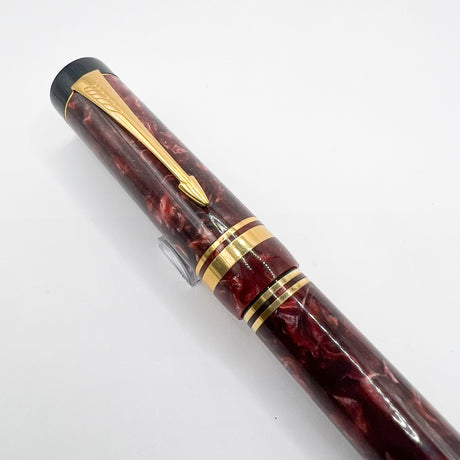 Parker Duofold First Generation Marbled Maroon Cap Actuated Ballpoint Pen - Circa 1989 - SCARCE!