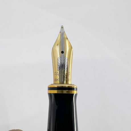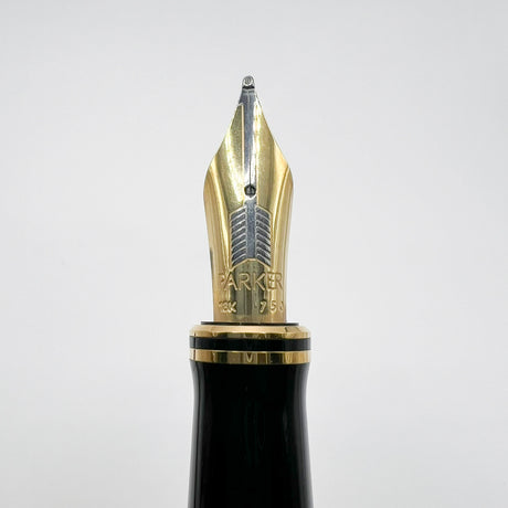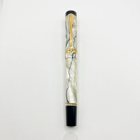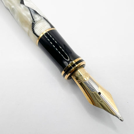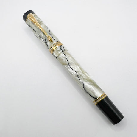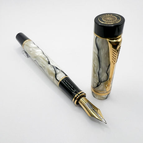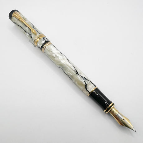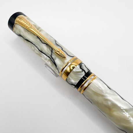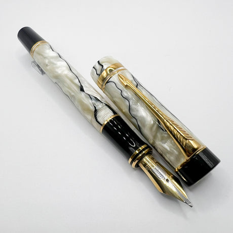 Parker Duofold Centennial (Largest) Lustrous Pearl & Black Fountain Pen - Broad 18kt Gold Nib