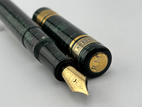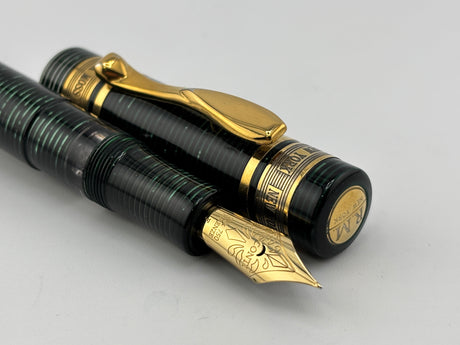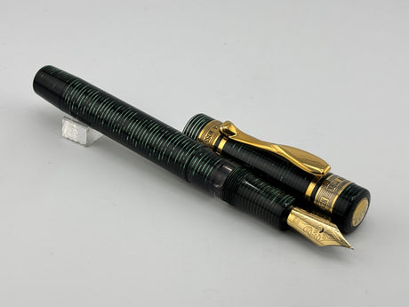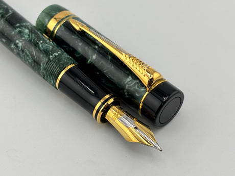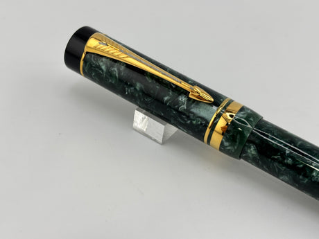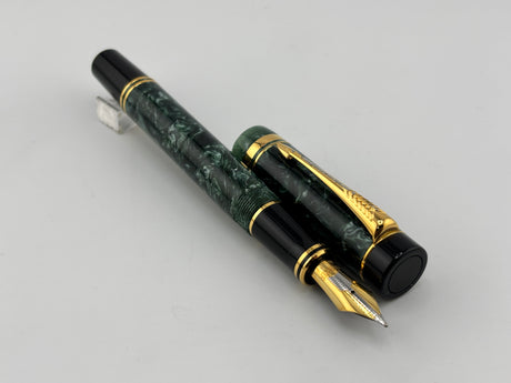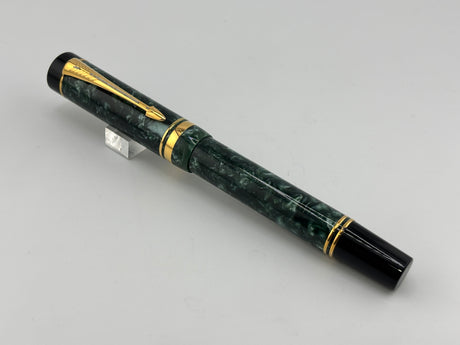 Parker Duofold Centennial Marbled Green Fountain Pen (Circa 1990) - Medium 18kt Gold Nib