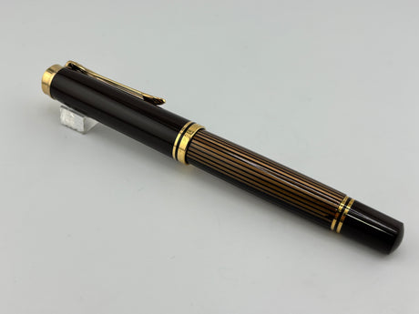 Pelikan M800 Brown Striped Barrel/Solid Brown Cap Fountain Pen - Medium 18kt Gold Nib