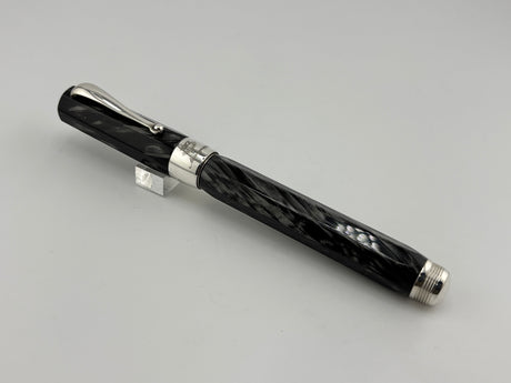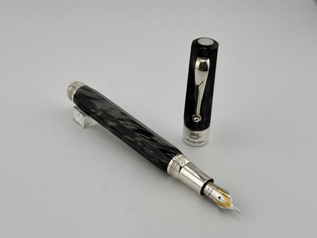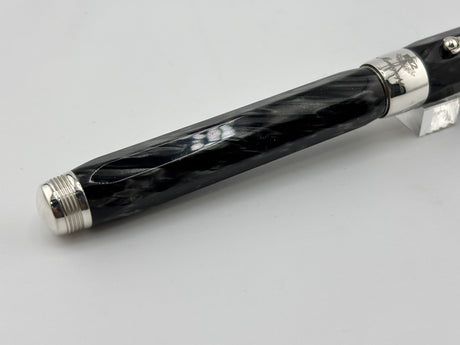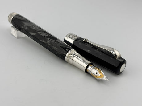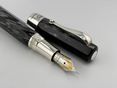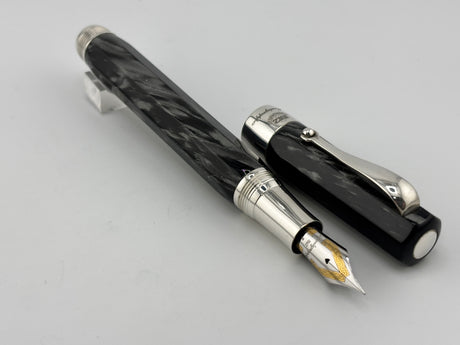 Montegrappa Symphony Lustrous Grigio Perla Celluloid Faceted Fountain Pen - Fine 18kt Gold Nib