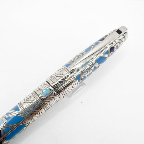 Cartier Art Deco Limited Edition Platinum Plated Ballpoint Pen with Blue Lacquer Accents