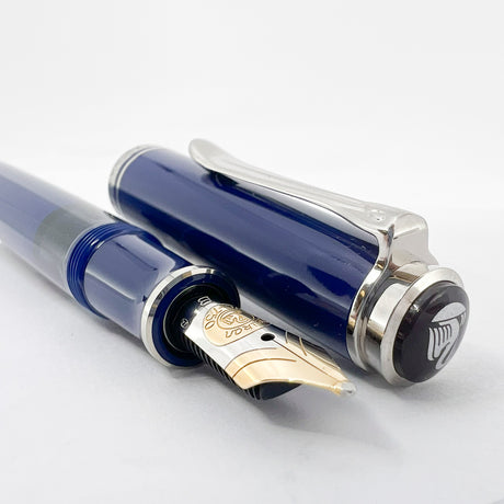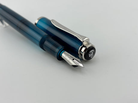 Pelikan M405 Solid Blue Special Edition Fountain Pen - Flexible Broad 18C Gold Nib