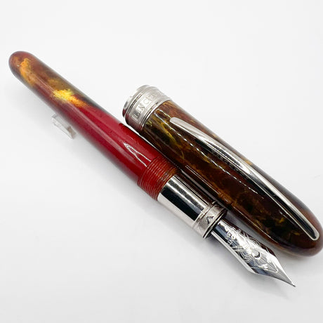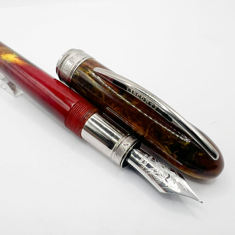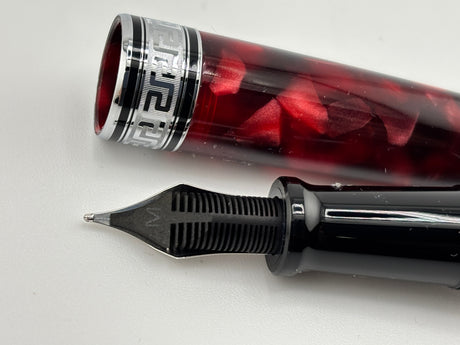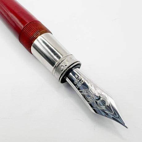 Ancora (Italy) Striated Lustrous Red Perla Fountain Pen - Flexible Medium 18kt Gold Nib