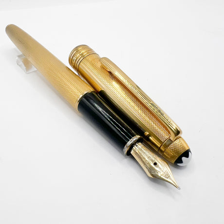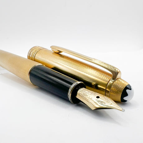 Montblanc Solitaire Gold Plated Barleycorn Classique #144 Fountain Pen - Fine 18kt Gold Nib