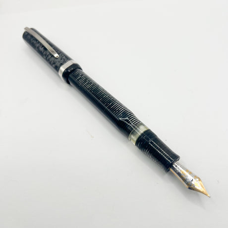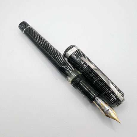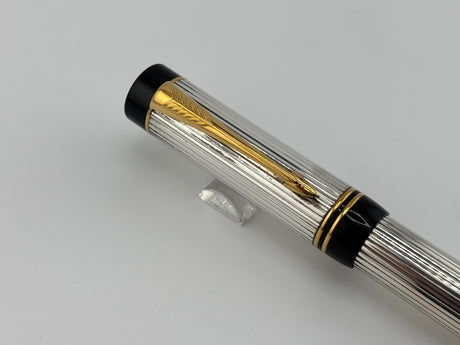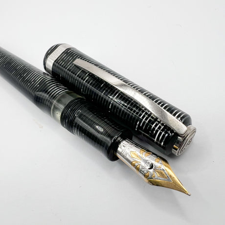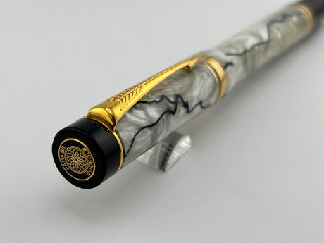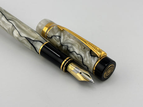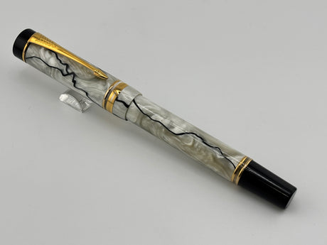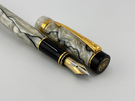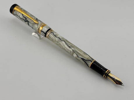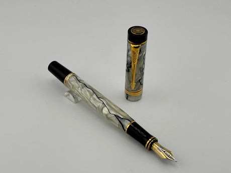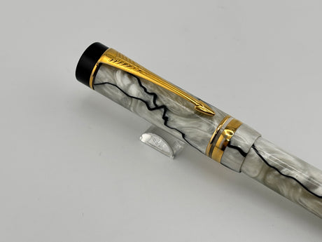 Parker Duofold International (Standard Size) Pearl & Black Fountain Pen - Fine 18kt Gold Nib