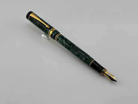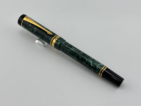 Parker Duofold Centennial Marbled Green Fountain Pen (Circa 1990) - Medium 18kt Gold Nib