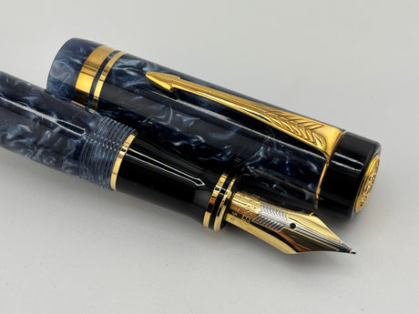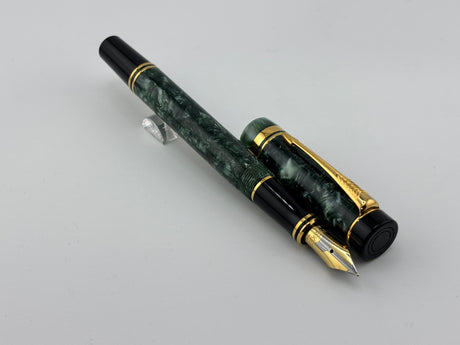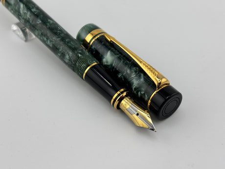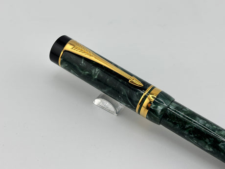 Parker International Duofold Green Marble Fountain Pen - Fine 18kt Gold Nib
