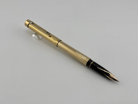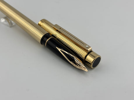 Sheaffer Full-Size Targa Gold-Plated Fluted Fountain Pen - Medium 14kt Gold Nib
