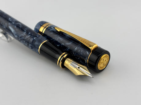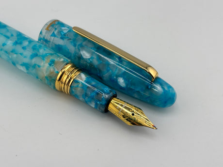 Wahl Eversharp Signature Marbled Blue Fountain Pen - Broad Stub 18kt Gold Nib