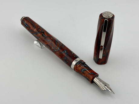 Franklin-Christoph Model 66 Septagonal Marbled Burgundy Fountain Pen - Fine 14kt Gold Nib