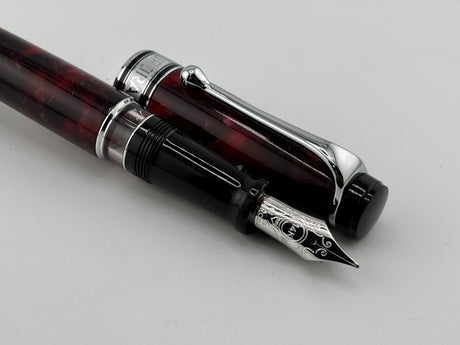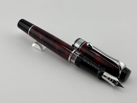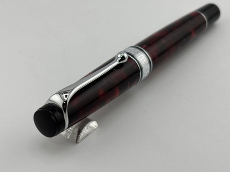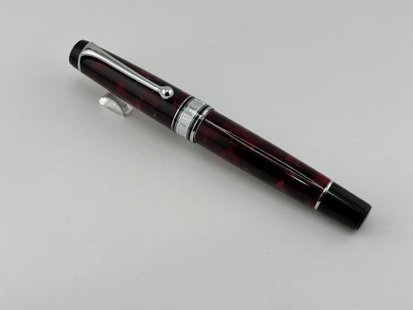 Aurora Optima Marbled Burgundy Auroloide Fountain Pen - Medium 14kt Gold Nib