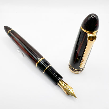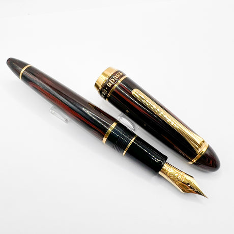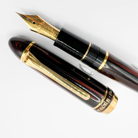 Tsuge (Made by Sailor) Large 1911 Rosewood Ebonite Fountain Pen - Fine 21kt Gold Nib - RARE!
