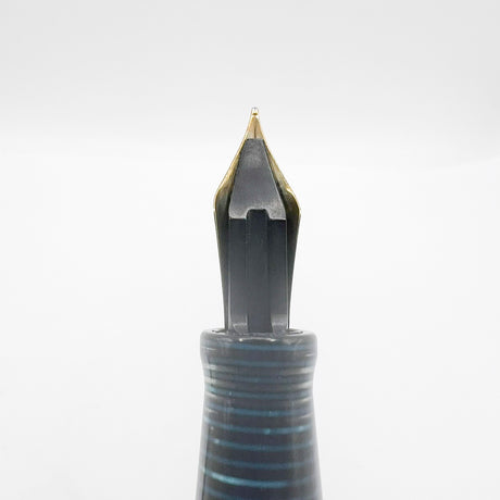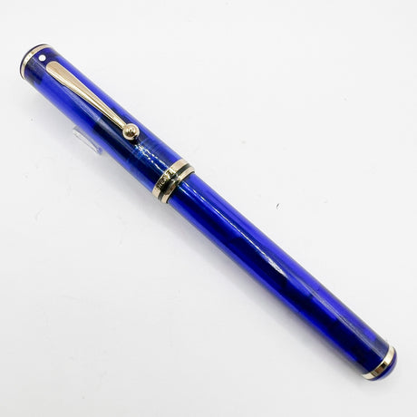 Visconti Manhattan Blue Celluloid With Scarce Cut-out Cap Band - Fine 18kt Gold Nib