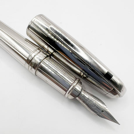 S. T. Dupont Orpheo (Largest Size) Palladium Plated Fountain Pen - Fine 18kt Gold Nib
