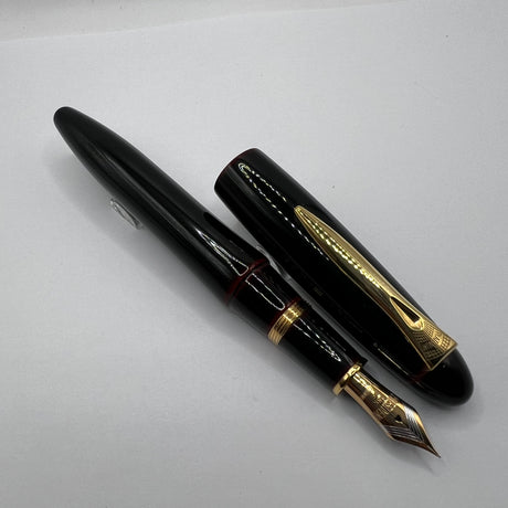 Tsuge (Made by Sailor) Large 1911 Rosewood Ebonite Fountain Pen - Fine 21kt Gold Nib - RARE!