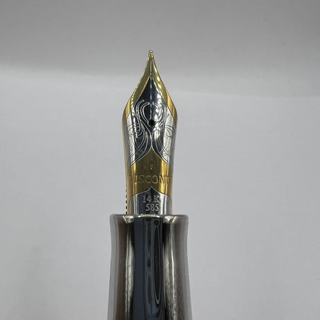 Visconti Wall Street Glittering Silver Celluloid Fountain Pen - Fine 14kt Gold Nib