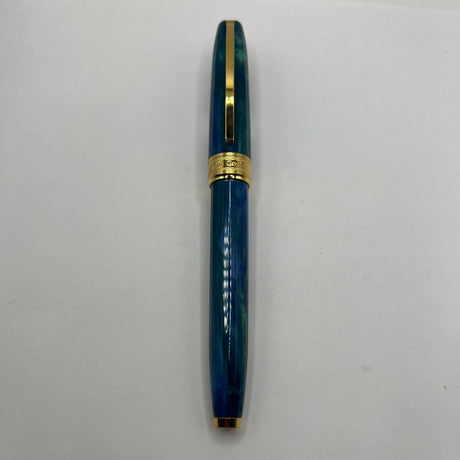 Visconti Wall Street Glittering Blue Celluloid Fountain Pen - Fine 14kt Gold Nib
